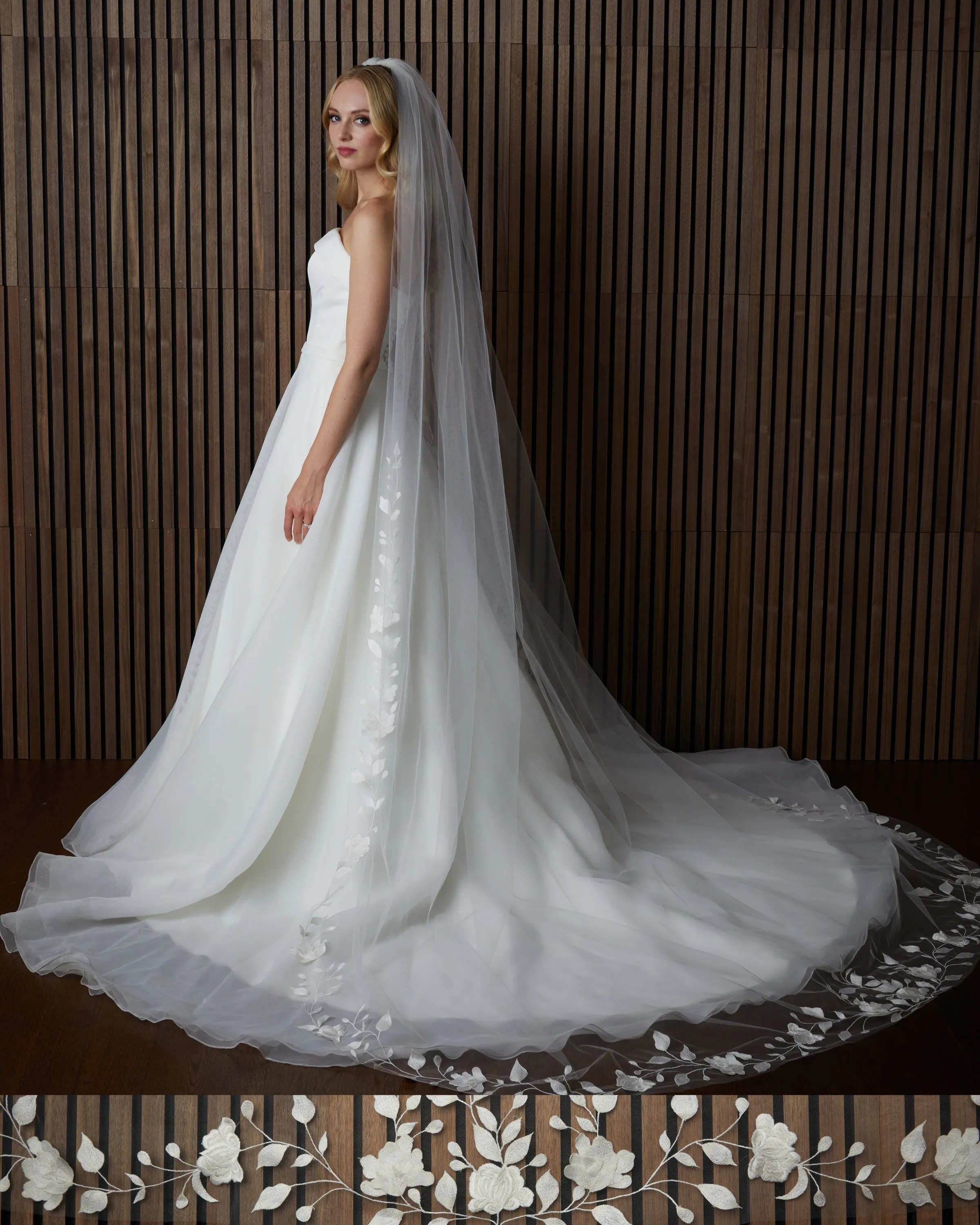 Marionat veils are crafted using the highest quality tulle, chosen for its delicate drape and lightweight feel. We hold our materials to the highest standards, sourcing fine laces and embellishments that elevate each design. Every veil is thoughtfully hand beaded, hand painted, and carefully sewn with love, resulting in timeless pieces that feel as special as the moment they’re worn.