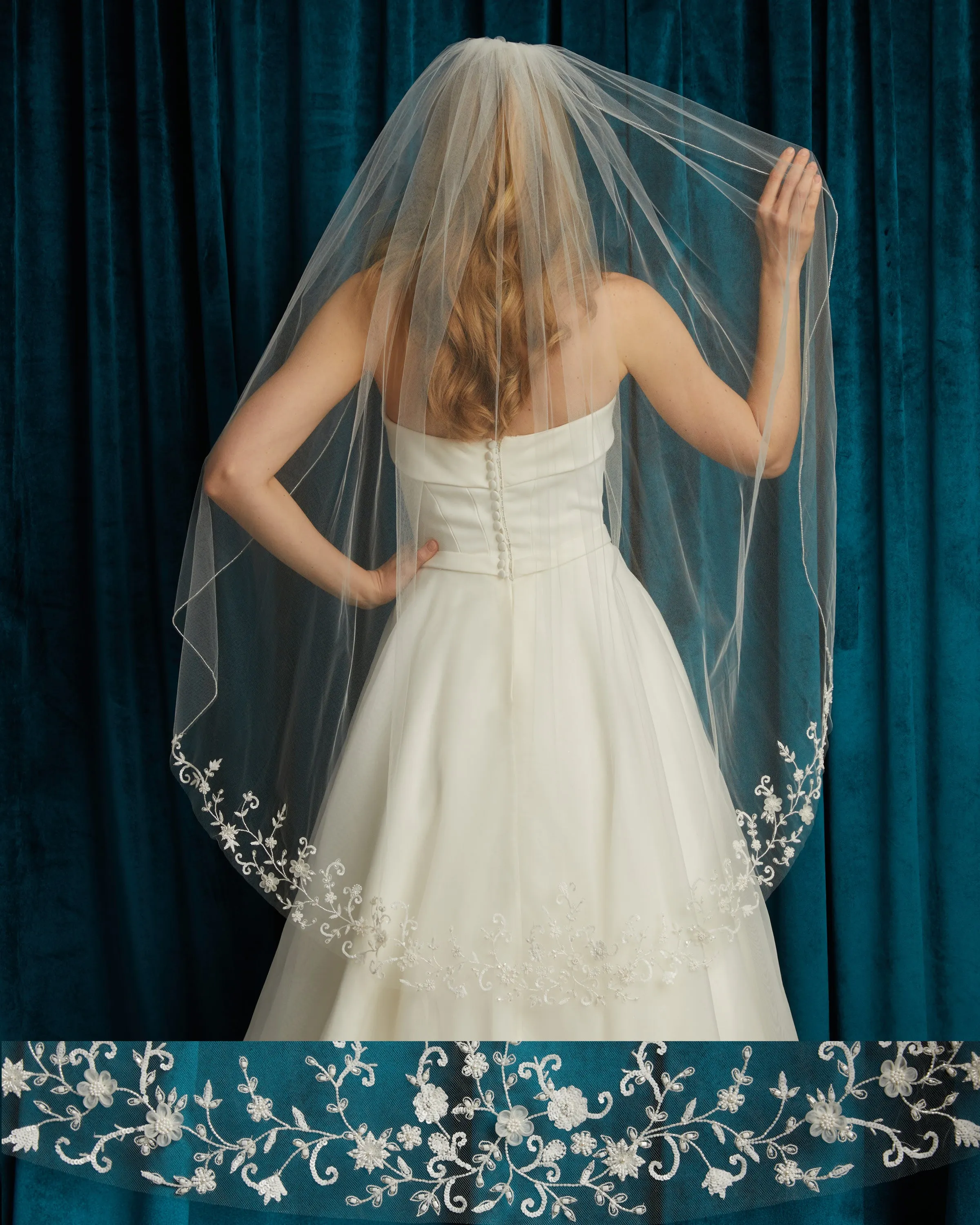 Marionat veils are crafted using the highest quality tulle, chosen for its delicate drape and lightweight feel. We hold our materials to the highest standards, sourcing fine laces and embellishments that elevate each design. Every veil is thoughtfully hand beaded, hand painted, and carefully sewn with love, resulting in timeless pieces that feel as special as the moment they’re worn.