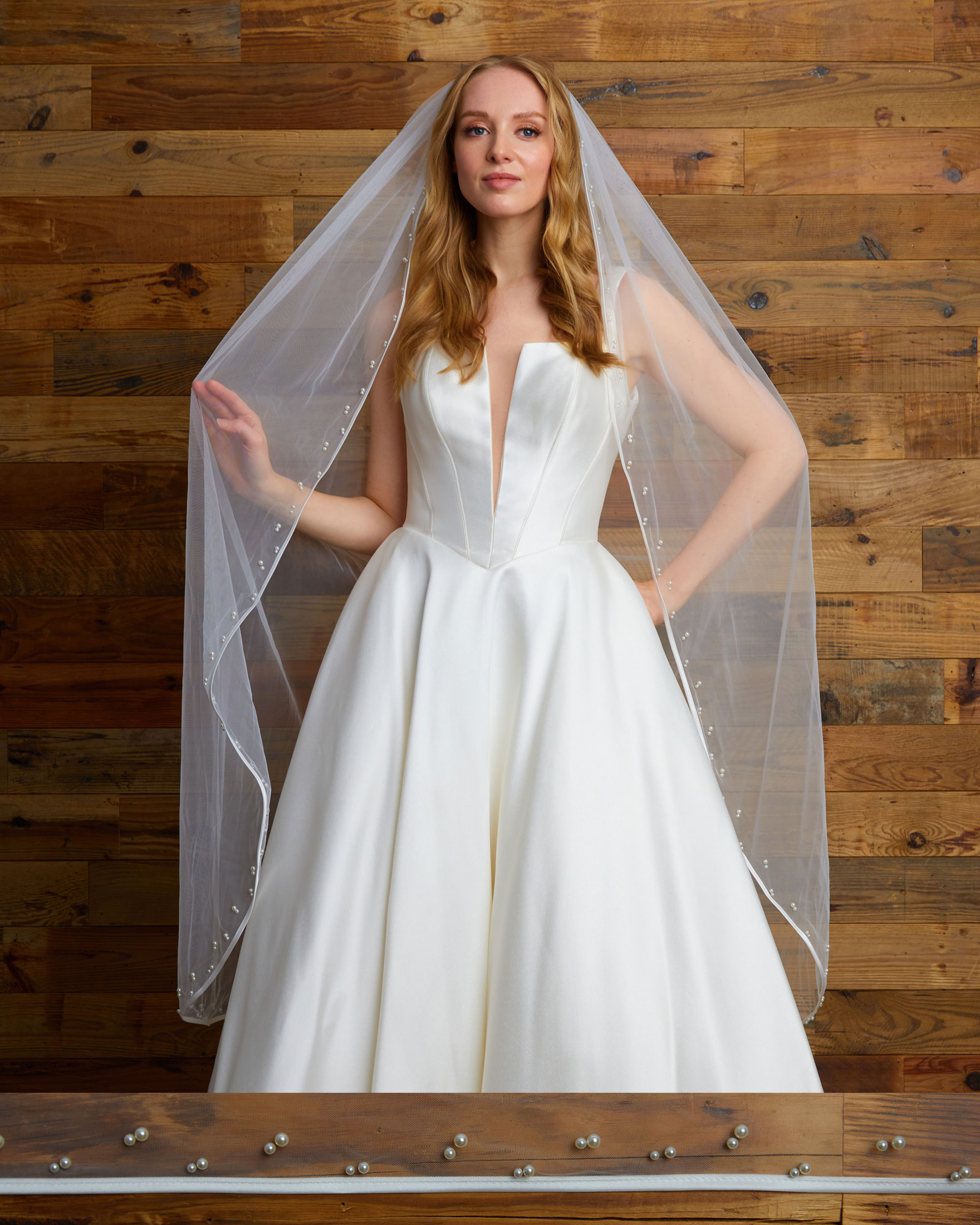 Silky tulle with satin bias edge and pearls