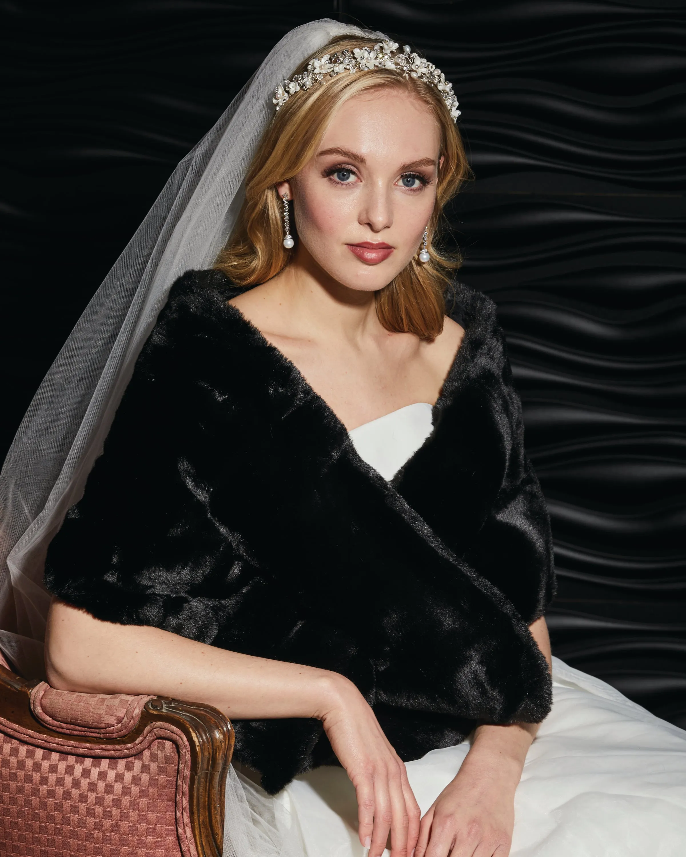 Our capes are designed to add softness, drama, and elegance to a bride’s look. Our “fur” capes are crafted from plush, luxurious faux furs for a warm, elevated feel, while our organza and tulle styles offer lightweight movement and romantic dimension, perfect for brides looking for a statement.