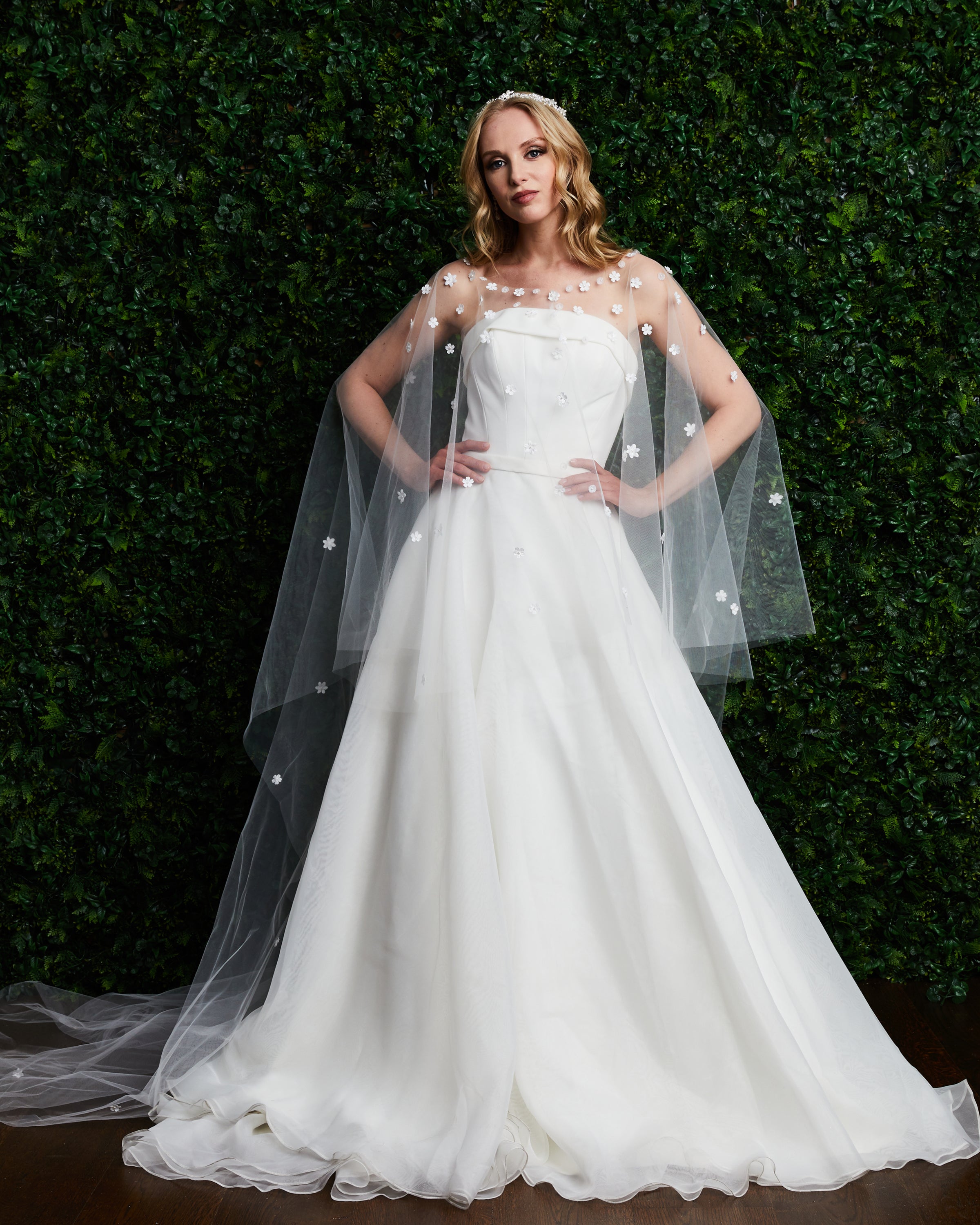 Our capes are designed to add softness, drama, and elegance to a bride’s look. Our “fur” capes are crafted from plush, luxurious faux furs for a warm, elevated feel, while our organza and tulle styles offer lightweight movement and romantic dimension, perfect for brides looking for a statement.