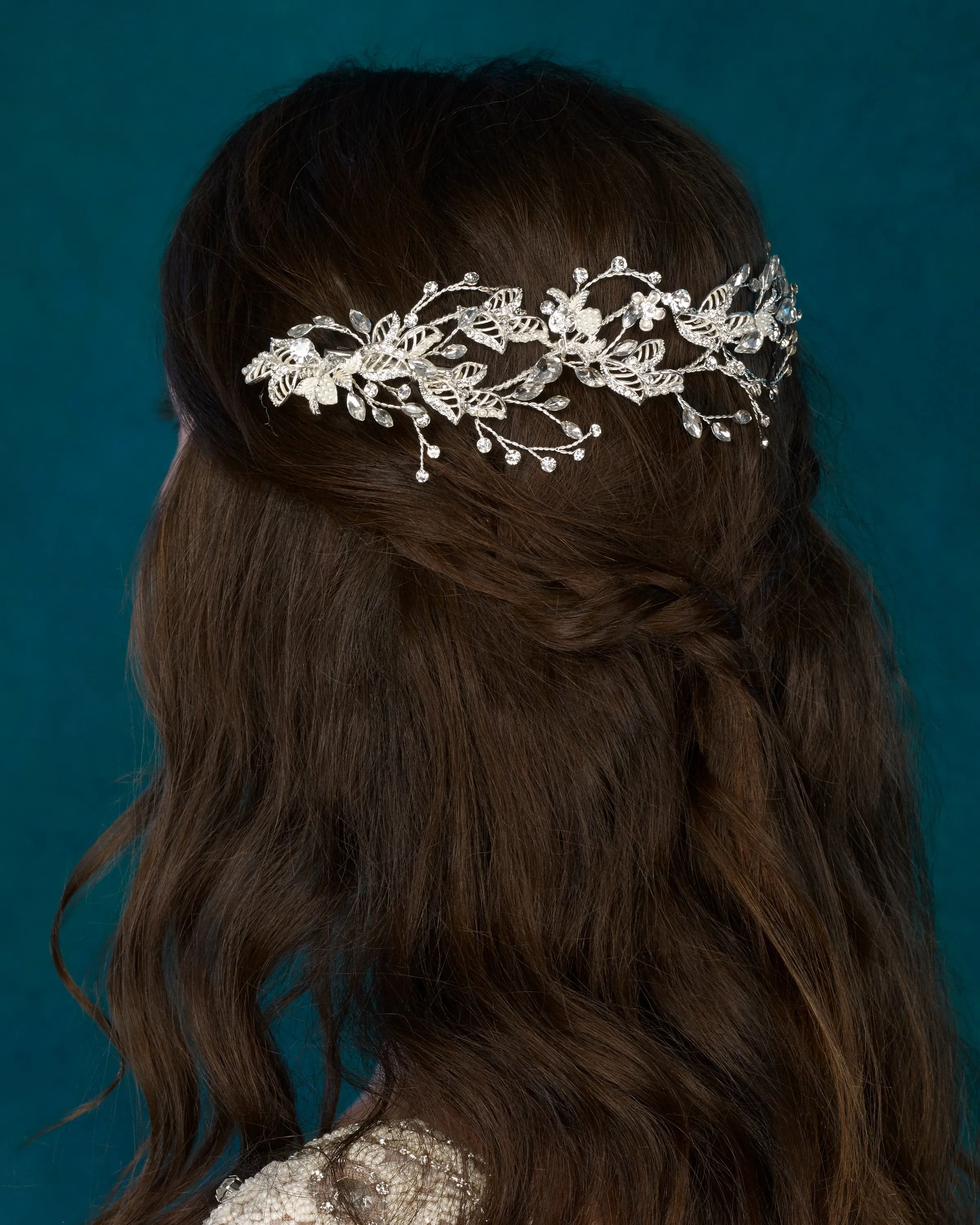 Handcrafted using rhinestones, pearls, beads, cast metal components, crystals, and other fine finishes, our headpieces are designed to bring timeless beauty and refined sparkle to a bride’s look. Each piece is silver or gold plated to ensure longevity, durability, and lasting quality.