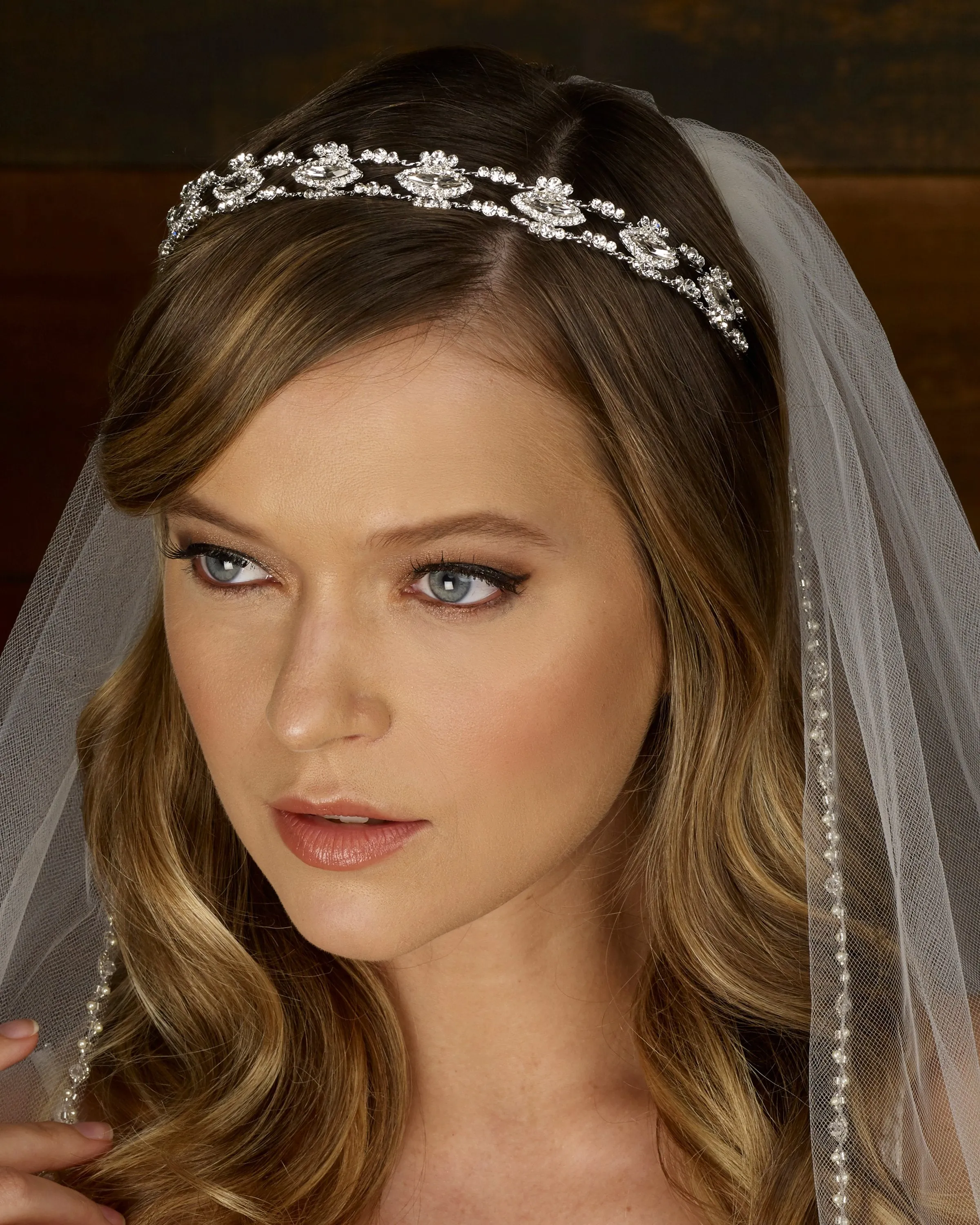 Handcrafted using rhinestones, pearls, beads, cast metal components, crystals, and other fine finishes, our headpieces are designed to bring timeless beauty and refined sparkle to a bride’s look. Each piece is silver or gold plated to ensure longevity, durability, and lasting quality.