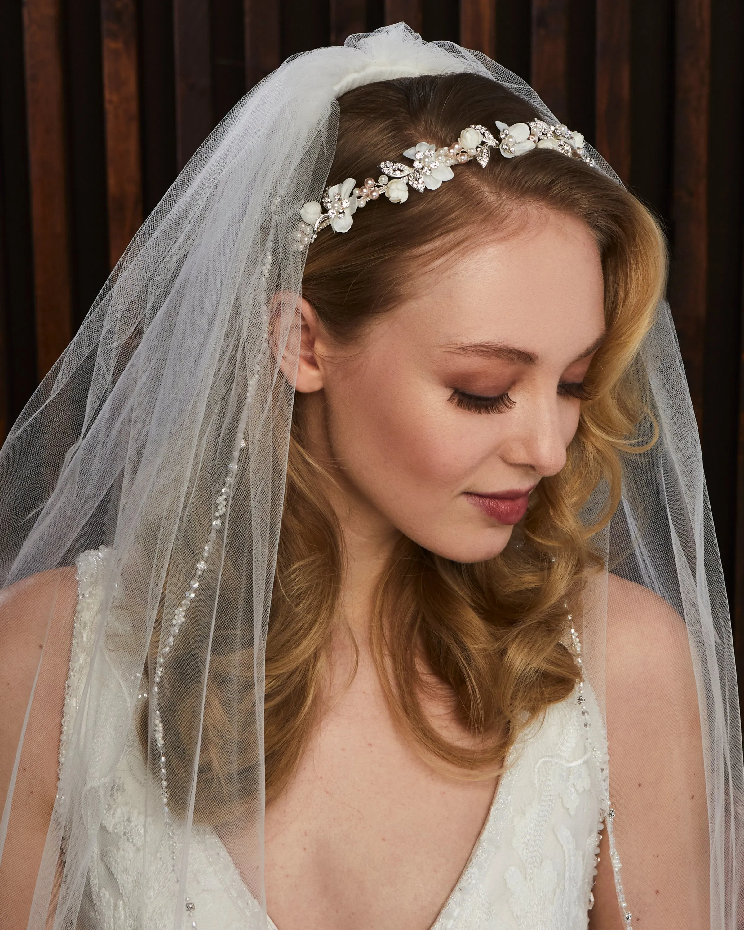 Handcrafted using rhinestones, pearls, beads, cast metal components, crystals, and other fine finishes, our headpieces are designed to bring timeless beauty and refined sparkle to a bride’s look. Each piece is silver or gold plated to ensure longevity, durability, and lasting quality.