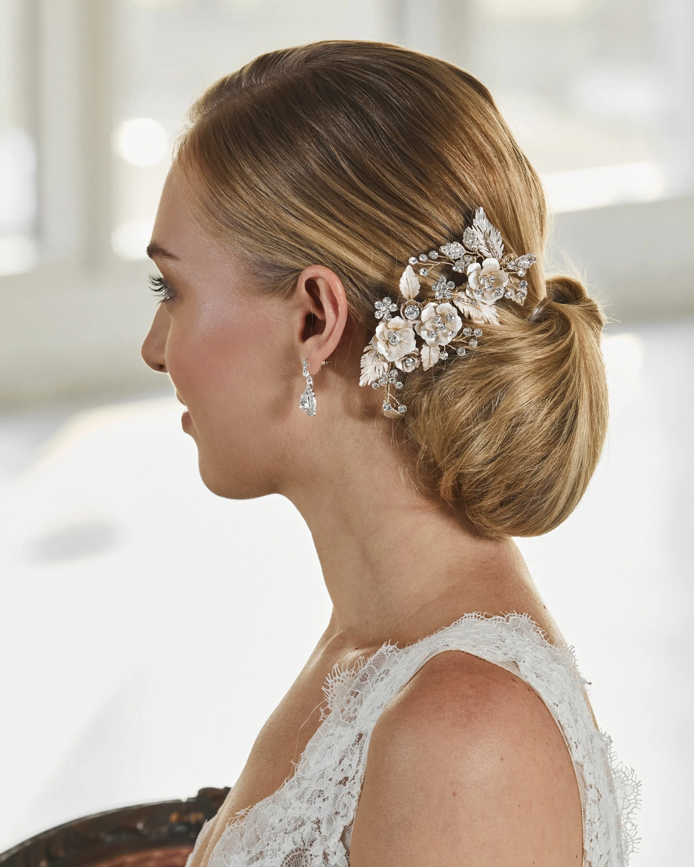Handcrafted using rhinestones, pearls, beads, cast metal components, crystals, and other fine finishes, our headpieces are designed to bring timeless beauty and refined sparkle to a bride’s look. Each piece is silver or gold plated to ensure longevity, durability, and lasting quality.