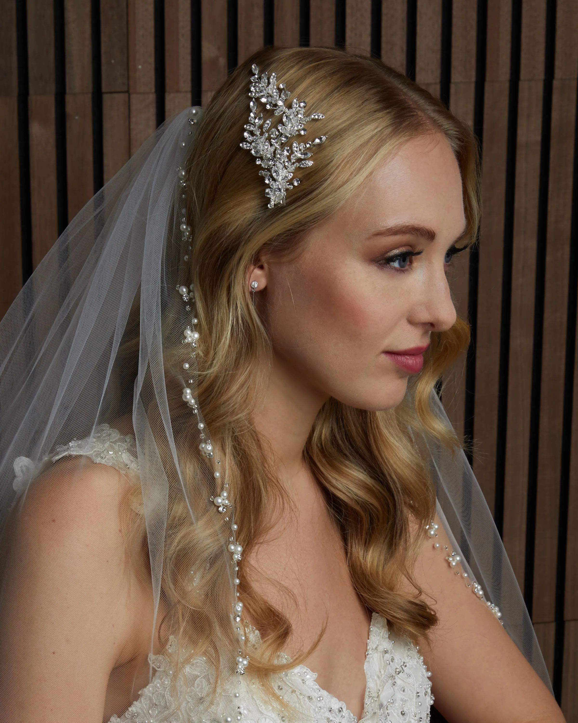 Handcrafted using rhinestones, pearls, beads, cast metal components, crystals, and other fine finishes, our headpieces are designed to bring timeless beauty and refined sparkle to a bride’s look. Each piece is silver or gold plated to ensure longevity, durability, and lasting quality.